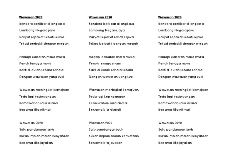 Lagu Wawasan 2020 Lirik Video Lagu Patriotik Youtube